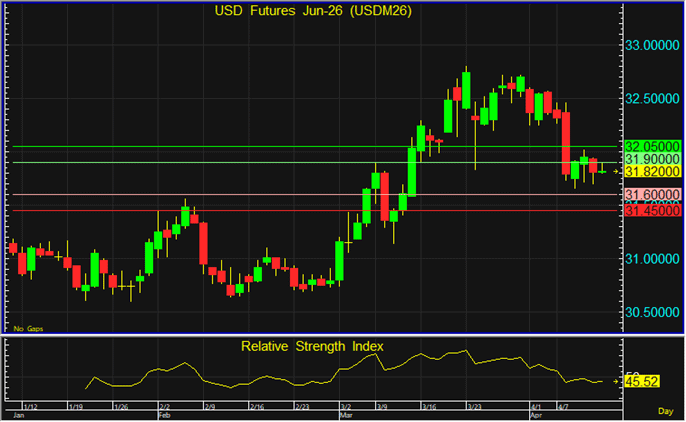 USDM26 แนะนำรอเปิด Short จากระดับ 31.90 บาท โดยมีเป้าหมายทำกำไรที่ระดับ 31.60 บาท และตัดขาดทุนหากราคาทะลุระดับ 32.05 บาทขึ้นไป