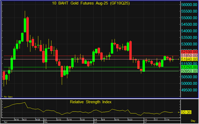 ราคา GF10Q25 มีแนวโน้มปรับฐานลง จึงแนะนำรอเปิด Short จากแนวต้านสำคัญที่ระดับ 51,850 บาท โดยมีเป้าหมายทำกำไรที่ 51,250 บาท และตัดขาดทุนหากราคาทะลุแนวต้านที่ระดับ 52,100 บาทขึ้นไป
