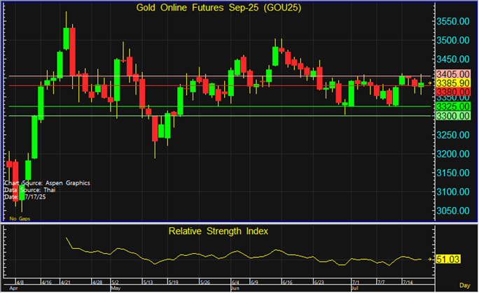 แนวรับ : 3,325 และ 3,300 ดอลลาร์