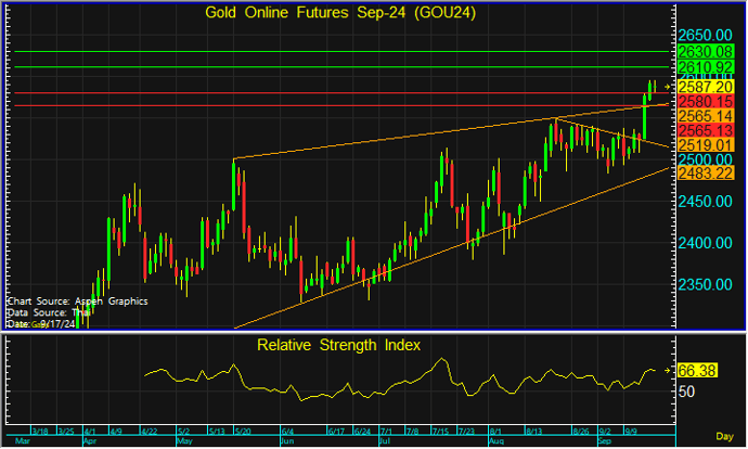 GOU24 ซื้อขายเบาบางรอผลการประชุมดอกเบี้ยในคืนพรุ่งนี้ หาก Fed มีการปรับลดดอกเบี้ยลง 0.50% อาจถึงราคาเป้าที่ 2,630 $ แนะนำรอ Long สัญญา GOU24 ที่ 2,580 $ โดยมีเป้าทำกำไรที่ 2,610-2,630 $ และตัดขาดทุนหากหลุดแนวรับที่ 2,565 $
