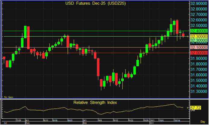 ราคา USDZ25 เริ่มย่อตัวลงมา แต่ยังแนะนำรอเปิด Short จากแนวต้านที่ระดับ 32.30 บาท โดยมีเป้าหมายทำกำไรที่ระดับ 32.10 บาท และตัดขาดทุนหากราคาทะลุแนวต้านที่ระดับ 32.40 บาทขึ้นไป