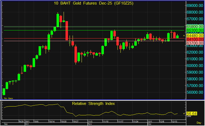 ราคา GF10Z25 เริ่มฟื้นตัวขึ้นมาอีกครั้ง จึงกลับมาแนะนำไล่เปิด Long โดยมีเป้าหมายทำกำไรที่ระดับ 65,300 บาท และตัดขาดทุนหากราคาหลุดแนวรับที่ระดับ 64,100 บาทลงไป