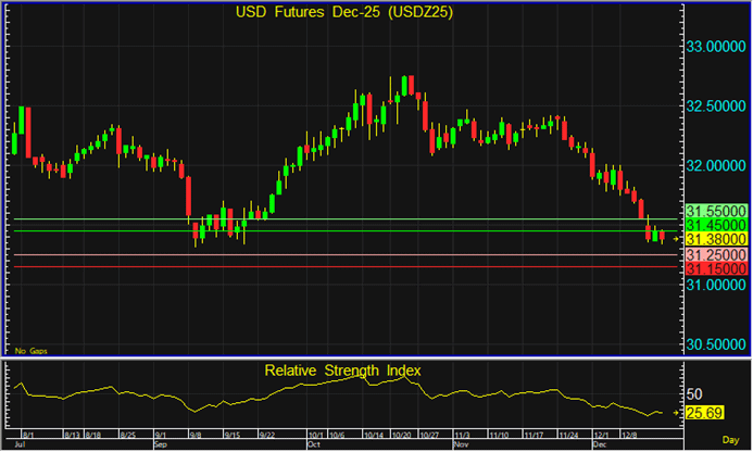 ราคา USDZ25 เผชิญแรงขายจากแนวต้าน และย่อตัวลงอีกครั้ง จึงแนะนำไล่เปิด Short โดยมีเป้าหมายทำกำไรที่ระดับ 31.25 และตัดขาดทุนหากราคาทะลุแนวต้านที่ระดับ 31.45 บาทขึ้นไป