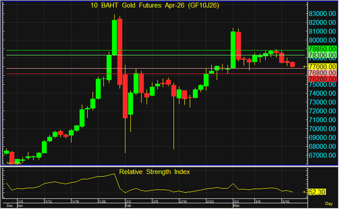 GF10J26 แนะนำรอเปิด Long จากระดับ 77,200 บาท โดยมีเป้าหมายทำกำไรที่ระดับ 78,600 บาท และตัดขาดทุนหากราคาทะลุระดับ 76,600 บาทลงไป
