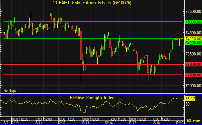GF10G26 แนะนำรอเปิด Long จากระดับ 73,000 บาท โดยมีเป้าหมายทำกำไรที่ระดับ 74,200 บาท และตัดขาดทุนหากราคาทะลุระดับ 72,500 บาทลงไป