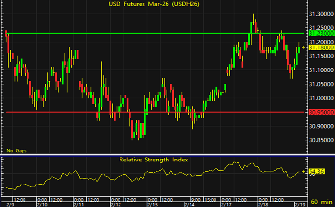 USDH26 แนะนำรอเปิด Short จากระดับ 31.23 บาท โดยมีเป้าหมายทำกำไรที่ระดับ 30.95 บาท และตัดขาดทุนหากราคาทะลุระดับ 31.33 บาท