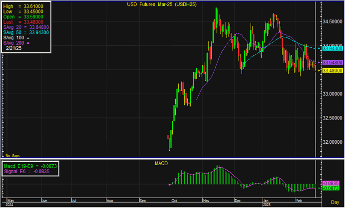 USDH25 ปรับตัวลงสู่แนวรับสำคัญที่ 33.50 บาท และปิดตลาดต่ำกว่า 33.50 บาท โดยหากหลุดแนวรับ 33.50 บาท แนะนำเปิด Short บริเวณ 33.50 โดยมีจุดตัดขาดทุนที่ 33.60 บาท เนื่องจาก USDH25 มีแนวโน้มปรับตัวลงได้ต่อ