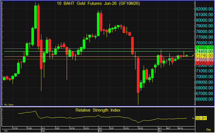 GF10J26 ยังคง Sideways แนะนำรอเปิด Long จากระดับ 73,550 บาท โดยมีเป้าหมายทำกำไรที่ระดับ 74,450 บาท และตัดขาดทุนหากราคาทะลุระดับ 73,050 บาทลงไป