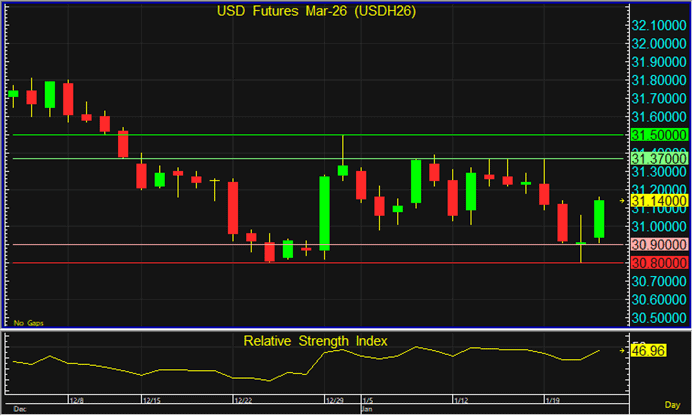 ราคา USDH26 ที่ฟื้นตัวขึ้น ประเมินว่าอาจยังผ่านแนวต้านที่ระดับ 31.37 บาทขึ้นไปได้ยาก จึงแนะนำรอเปิด Short จากแนวต้านดังกล่าว โดยมีเป้าหมายทำกำไรที่ระดับ 30.90 บาท และตัดขาดทุนหากราคาทะลุแนวต้านที่ระดับ 31.50 บาทขึ้นไป