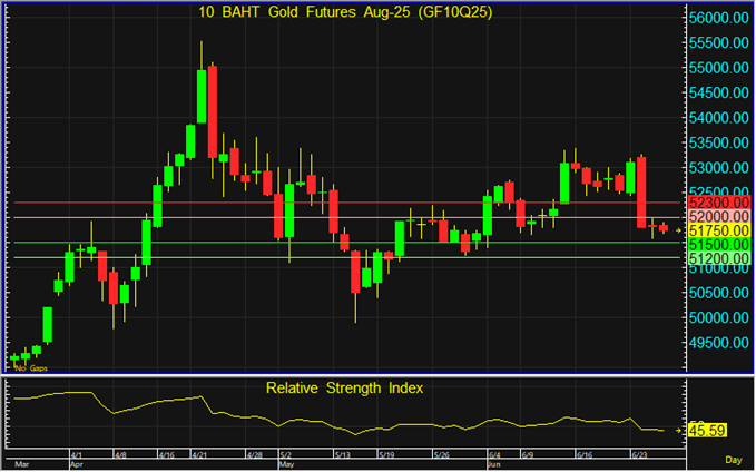 GF10Q25 ที่เริ่มฟื้นตัวกลับ ยังคงต้องเผชิญแรงขายจากแนวต้านที่ระดับ 52,000 บาท ซึ่งประเมินว่าราคาอาจยังผ่านขึ้นไปได้ยาก จึงแนะนำรอเปิด Short จากแนวต้านดังกล่าว โดยมีเป้าทำกำไรที่ระดับ 51,500 บาท และตัดขาดทุนหากราคาทะลุแนวต้านที่ระดับ 52,300 บาทขึ้นไป
