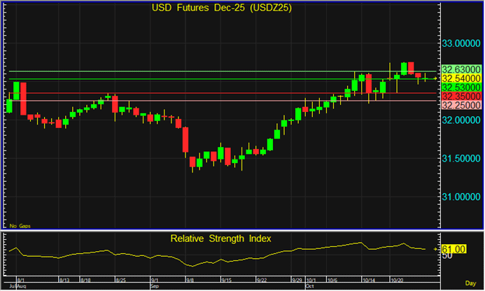 ราคา USDZ25 ย่อตัวลงมา แต่ยังแนะนำรอเปิด Short จากแนวต้านที่ระดับ 32.53 บาท โดยมีเป้าหมายทำกำไรที่ระดับ 32.35 บาท และตัดขาดทุนหากราคาทะลุแนวต้านที่ระดับ 32.63 บาทขึ้นไป