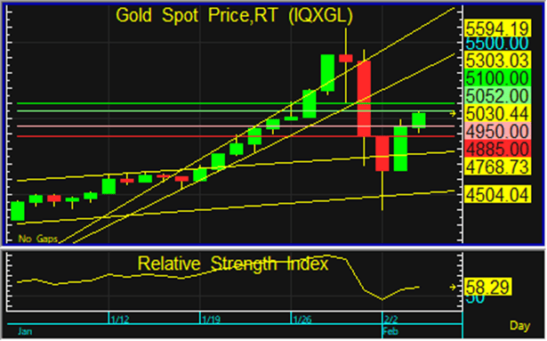 ราคาทองโลกปรับตัวลงทดสอบแนวรับที่ 4,950 ดอลลาร์ และมีการปรับตัวขึ้น จึงประเมินว่า ทองโลกมีแนวโน้มปรับตัวขึ้นทดสอบแนวต้านบริเวณ 5,052 และ 5,100 ดอลลาร์ และอาจมีการย่อตัวลงอีกครั้งในภายหลัง แต่หากทองโลกหลุดแนวรับถัดไปที่ 4,885 ดอลลาร์ ทองโลกอาจปรับฐานลงต่อเนื่อง