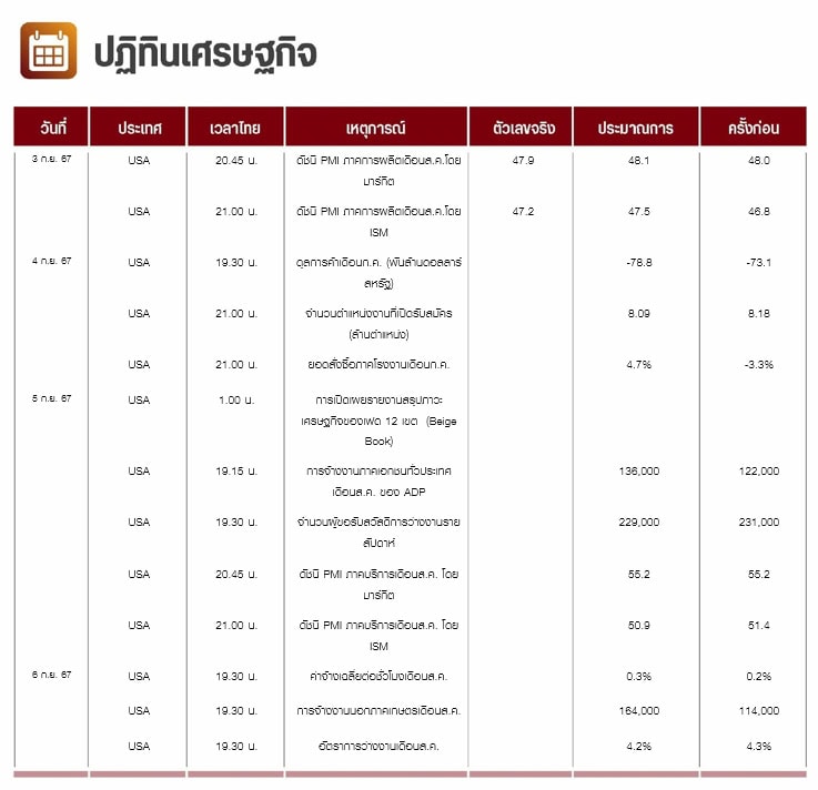 คืนนี้สหรัฐจะเปิดเผยดุลการค้าเดือนก.ค. ตลาดคาดว่าจะขาดดุล 78.8 พันล้านดอลลาร์สหรัฐ จากขาดดุล 73.1 พันล้านดอลลาร์สหรัฐ จำนวนตำแหน่งงานที่เปิดรับสมัคร และยอดสั่งซื้อภาคโรงงานเดือนก.ค.