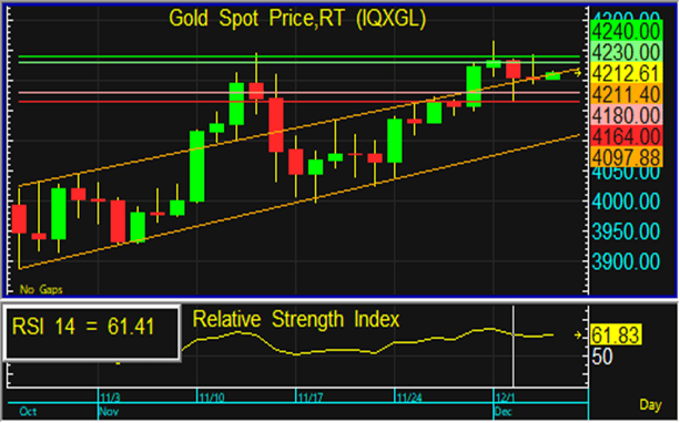 ราคาทองโลกได้ปรับตัวลงทดสอบแนวรับที่ 4,180 ดอลลาร์ แต่ยังสามารถยืนเหนือแนวรับดังกล่าว