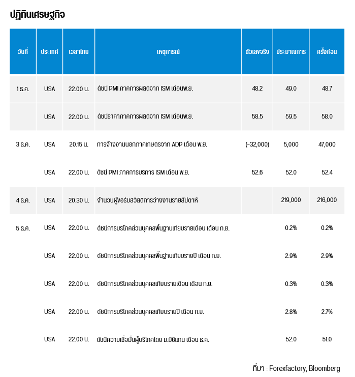 ทองโลกยังแกว่งตัวในกรอบแนวรับ / ต้าน จากการที่สหรัฐฯ เผยตัวเลขดัชนี PMI ภาคบริการออกมามากกว่าที่นักวิเคราะห์คาดการณ์ / ครั้งก่อน ในขณะที่บอนด์ยีลด์สหรัฐฯ อายุ 10 ปี ยังคงทรงตัวอยู่ในระดับ 4.06% อย่างไรก็ตาม จีนได้แสดงความไม่พอใจต่อสหรัฐฯ ในประเด็นเรื่องไต้หวัน โดยปธน.ทรัมป์ ได้ลงงามในข้อกฎหมายการรับประกันไต้หวัน กำหนดว่า กระทรวงการต่างประเทศสหรัฐ ควรทบทวนการติดต่อกับไต้หวันให้สม่ำเสมอ ไม่น้อยกว่าหนึ่งครั้งในทุกๆ ห้าปี และทางฝั่งนายหลิน เจี้ยน โฆษกกระทรวงต่างประเทศจีน ได้กล่าวถึงการที่จีนคัดค้านในการติดต่อกันอย่างเป็นทางการไม่ว่าจะในรูปแบบใดระหว่างสหรัฐกับภูมิภาคไต้หวันของจีน นอกจากนี้ ดัชนีเงินดอลลาร์ (DXY) ได้ปรับตัวลงเป็นวันที่ 8 สู่ระดับ 98.86 หน่วย จากระดับ 100.21 หน่วย สืบเนื่องมาจากสหรัฐฯ เผยจำนวนการจ้างงานนอกเกษตร ADP ต่ำกว่าคาดการณ์ / ครั้งก่อน ในขณะที่เมื่อวันอังคาร ปธน.ทรัมป์ได้กล่าวถึงนายเควิน แฮสเซ็ตต์ ว่าเป็นประธานเฟดที่มีศักยภาพ และจะมีการประกาศการตัดสินใจเลือกประธานเฟดคนใหม่ในช่วงต้นปีหน้า ทางด้านกองทุน SPDR ขายทองคำ 1.72 ตัน รวมสุทธิ 1,046.58 ตัน