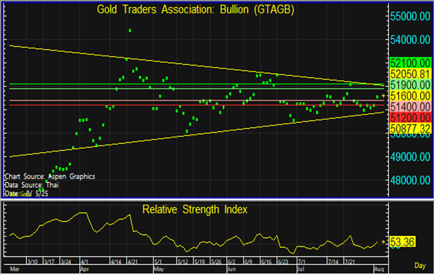 ราคาทองในประเทศอยู่ในระยะ Sideway ในกรอบแคบจากการที่ทองโลกเป็นขาขึ้น ขณะที่ค่าเงินบาทแข็งค่า จึงแนะนำเข้าซื้อสะสมแนวรับที่ระดับ 51,400 บาท และขายทำกำไรหากราคาทดสอบแนวต้านที่ 51,900 บาท แต่หากราคาหลุดแนวรับที่ 51,200 บาท ลงไป แนะนำขายตัดขาดทุน