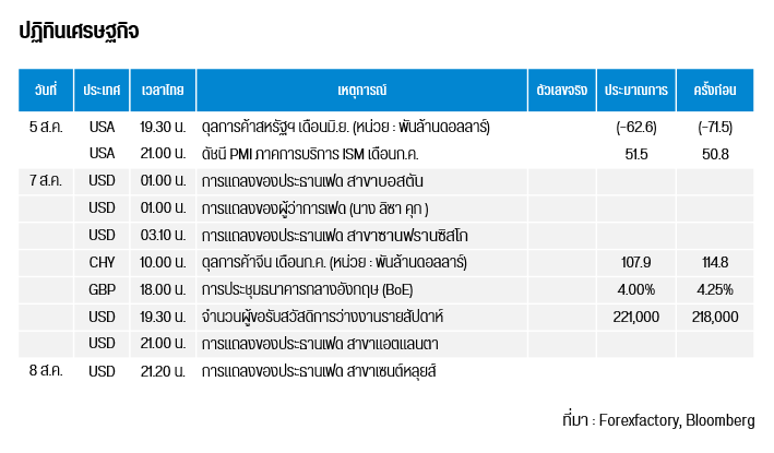 คืนนี้เวลา 19.30 น. สหรัฐฯ ประกาศดุลการค้าสหรัฐฯ เดือนมิ.ย. และ เวลา 21.00 ดัชนี PMI ภาคการบริการ ISM เดือนก.ค.