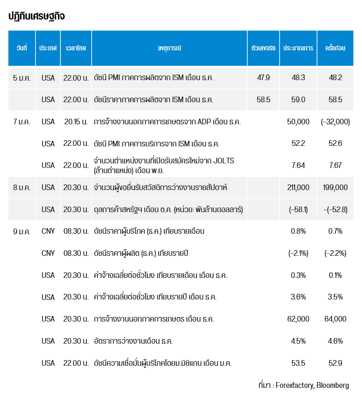 คืนนี้ 20.15 น. สหรัฐฯ เผยการจ้างงานนอกภาคการเกษตรจาก ADP เดือน ธ.ค. และเวลา 22.00 น. เผยดัชนี PMI ภาคการบริการจาก ISM เดือน ธ.ค. , จำนวนตำแหน่งงานที่เปิดรับสมัครใหม่จาก JOLTSเดือน พ.ย.
