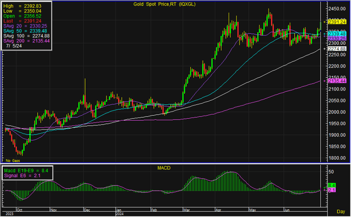 คาดว่าราคาทองคำมีแนวโน้มปรับตัวขึ้นได้ต่อโดยมีโอกาสปรับขึ้นสู่ระดับ 2,400 ดอลลาร์ แนะนำเข้าซื้อบริเวณ 2,370-2,380 ดอลลาร์ โดยมีจุดตัดขาดทุนที่ 2,360 ดอลลาร์ และ Let Profit Run