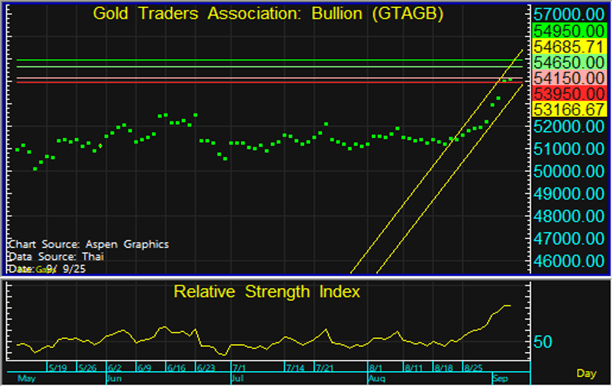 ราคาทองในประเทศอยู่ในระยะ Sideway Up จากการที่ทองโลกเป็นขาขึ้น แต่ค่าเงินบาทแข็งค่าในรอบ 4 ปี จึงแนะนำเข้าซื้อสะสมแนวรับที่ระดับ 54,150 บาท และขายทำกำไรหากราคาทดสอบแนวต้านที่ 54,650 บาท แต่หากราคาหลุดแนวรับที่ 53,950 บาท ลงไป แนะนำขายตัดขาดทุน