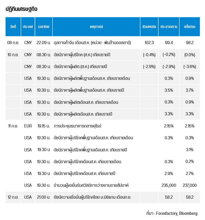 คืนนี้เวลา เวลา 19.30 สหรัฐฯ เผยดัชนีราคาผู้ผลิตพื้นฐานเดือนส.ค. เทียบรายเดือน / รายปี และ ดัชนีราคาผู้ผลิตทั่วไปเดือนส.ค. เทียบรายเดือน / รายปี