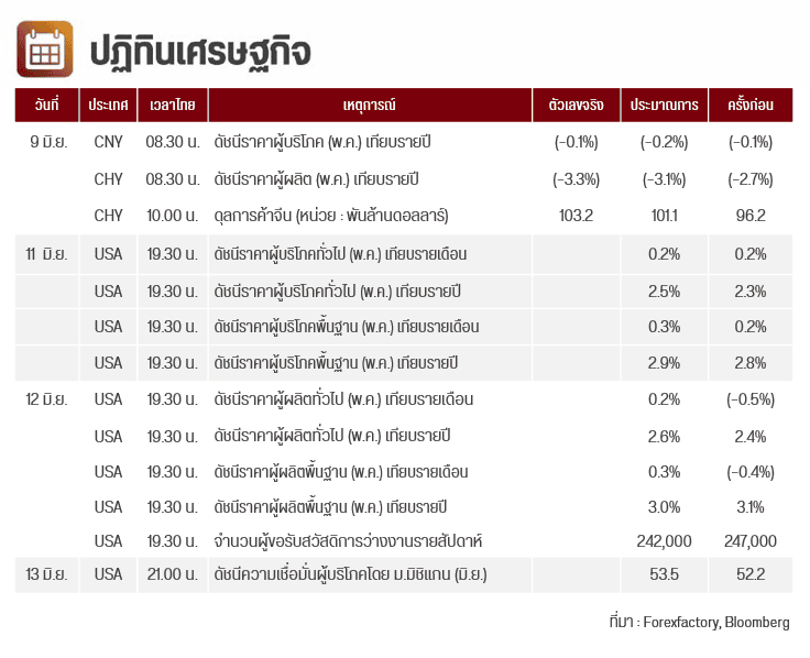 คืนนี้ สหรัฐฯ มีการประกาศตัวเลขดัชนีราคาผู้บริโภคทั่วไป (พ.ค.) เทียบรายเดือน / รายปี และดัชนีราคาผู้บริโภคพื้นฐาน (พ.ค.) เทียบรายเดือน / รายปี