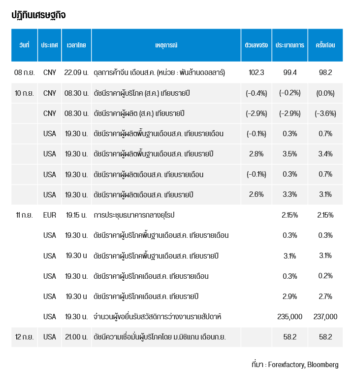 คืนนี้เวลา เวลา 19.15 น. ยุโรป เผยการประชุมธนาคารกลางยุโรป และเวลา 19.30 น. สหรัฐฯ เผยดัชนีราคาผู้บริโภคพื้นฐาน / ทั่วไป เดือนส.ค. เทียบรายเดือน / รายปี , จำนวนผู้ขอยื่นรับสวัสดิการว่างงานรายสัปดาห์