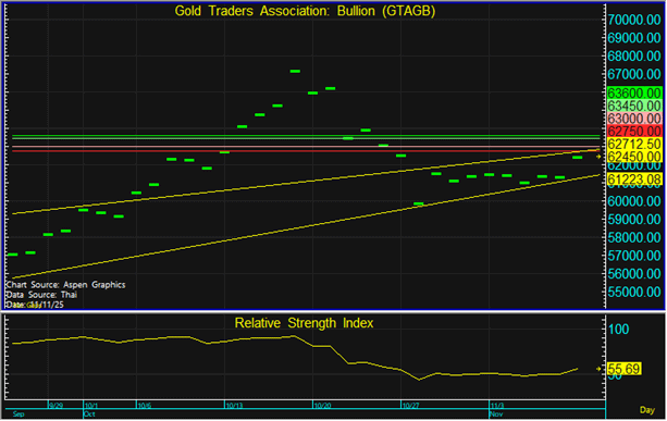 จึงแนะนำทยอยขายตามแนวต้านที่ระดับ 63,450 และทยอยซื้อตามแนวรับที่ 63,000 บาท แต่หากราคาหลุดแนวรับที่ 62,750 บาท ลงไป แนะนำขายตัดขาดทุน