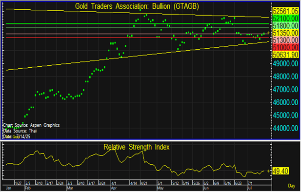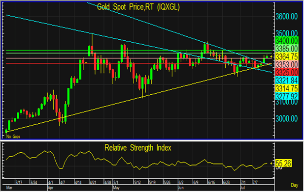 ฟอนเดอร์ เลเยน ประธานคณะกรรมาธิการยุโรป (EC) กล่าวว่า EU จะตอบโต้ด้วยมาตรการที่เหมาะสมหากจำเป็น และทางฝั่งรัฐบาลเม็กซิโกออกแถลงการณ์ว่าอัตราภาษีที่สหรัฐฯ เรียกเก็บนั้นไม่เป็นธรรม เนื่องจากทั้งสองประเทศตกลงที่จะจัดตั้งคณะทำงานทวิภาคีถาวรขึ้นก่อนหน้านั้นแล้ว แต่ทรัมป์ระบุหลังจากประกาศขึ้นภาษีว่าเม็กซิโกยังทำได้ไม่ดีพอ ในขณะที่นาย คริสโตเฟอร์ วอลเลอร์ ผู้ว่าเฟด ได้กล่าวเมื่อสัปดาห์ที่ผ่านมาว่า ยังคงเป็นไปได้ที่เฟดจะปรับลดดอกเบี้ยในเดือนนี้ แต่ตลาดยังคงคาดการณ์ว่าภายในสิ้นปีนี้จะมีการลดดอกเบี้ย 2 ครั้งในเดือน ก.ย. และ ธ.ค. อย่างไรก็ตาม กระทรวงการคลังสหรัฐฯ เปิดเผยว่า รัฐบาลสหรัฐฯ กลับมาเกินดุลงบประมาณจากที่เคยขาดดุลหนัก สืบเนื่องจากรายได้ภาษีศุลกากรที่เพิ่มขึ้น โดยงบประมาณกลับมาเกินดุลมากกว่า 27,000 ล้านดอลลาร์ ในเดือนมิ.ย. จากเดิมที่ขาดดุล 316,000 ล้านดอลลาร์ ในเดือนพ.ค. ทำให้เงินดอลลาร์กลับมาแข็งค่าเช่นกัน ทางด้านกองทุน SPDR ขายทอง 0.02 ตันในสัปดาห์ก่อน รวมสุทธิ 947.64 ตัน