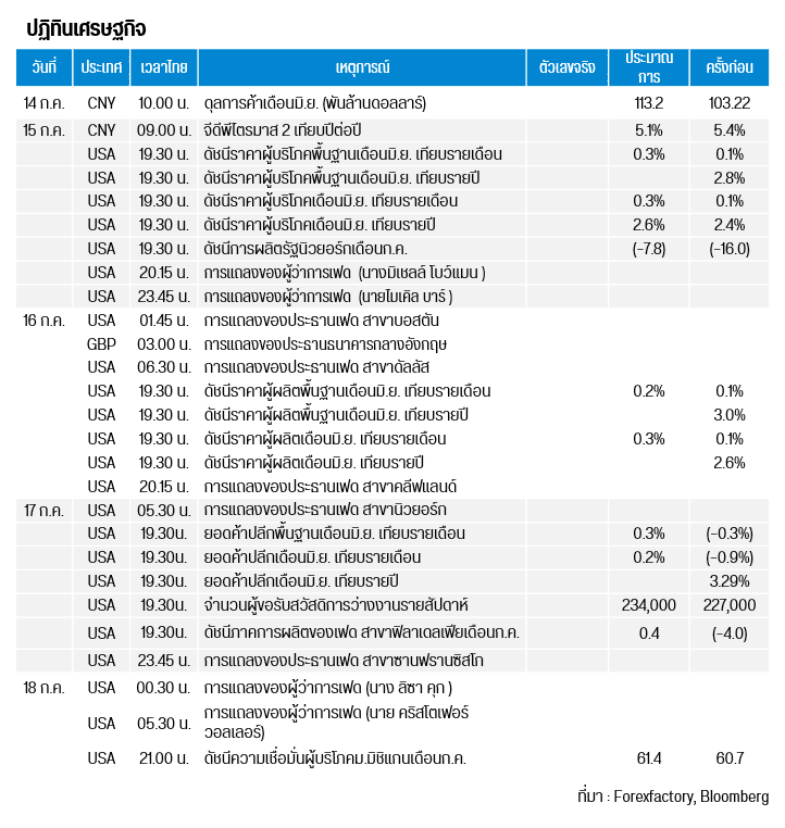 ตัวเลขเศรษฐกิจที่ต้องติดตาม