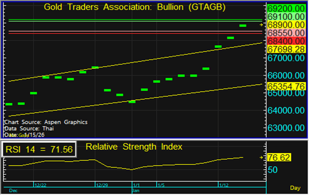 แนวต้าน : 69,100 และ 69,200 บาท