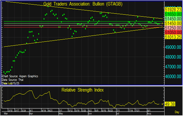 ราคาทองในประเทศอยู่ในระยะ Sideway จากการที่ทองโลกปรับตัวลง ในขณะที่ค่าเงินบาทอ่อนค่า จึงแนะนำเข้าซื้อสะสมแนวรับที่ระดับ 51,250 บาท และขายทำกำไรหากราคาทดสอบแนวต้านที่ 51,450 บาท แต่หากราคาหลุดแนวรับที่ 51,050 บาท ลงไป แนะนำขายตัดขาดทุน