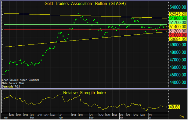 ราคาทองในประเทศยังคง Sideway จากการที่ทองโลกไต่ระดับขึ้น แต่ค่าเงินบาทยังคงแกว่งตัว แนะนำรอเข้าซื้อสะสมแนวรับที่ระดับ 51,200 บาท และขายทำกำไรหากราคาทดสอบแนวต้านที่ 51,700 บาท แต่หากราคาหลุดแนวรับที่ 51,000 บาทลงไป แนะนำขายตัดขาดทุน