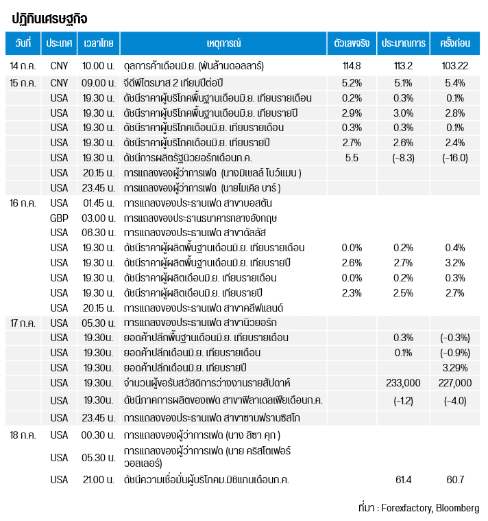คืนนี้เวลา 19.30 น. สหรัฐฯ ประกาศยอดค้าปลีกทั่วไปและพื้นฐานเดือนมิ.ย. , จำนวนผู้ขอรับสวัสดิการว่างงานรายสัปดาห์ , ดัชนีภาคการผลิตของเฟด สาขาฟิลาเดลเฟียเดือนก.ค.