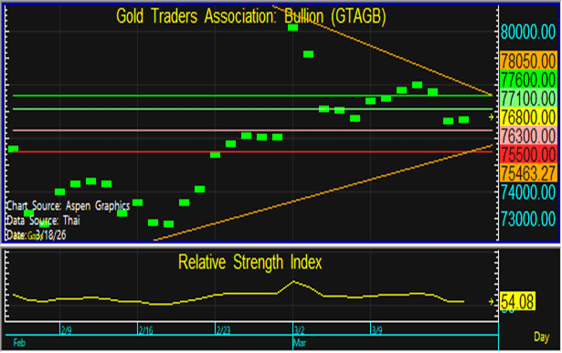 แนวต้าน : 77,100 และ 77,600 บาท