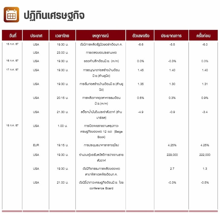 คืนนี้ติดตามการประชุมธนาคารกลางยุโรป ตลาดคาดว่าจะยังคงตรึงไว้อัตราดอกเบี้ยเท่าเดิม ส่วนสหรัฐจะมีการเปิดเผยจำนวนผู้ขอรับสวัสดิการว่างงานรายสัปดาห์ ดัชนีกิจกรรมการผลิตของเฟดสาขาฟิลาเดลเฟียเดือนก.ค. และดัชนีชี้นำภาวะเศรษฐกิจเดือนมิ.ย. โดย Conference Board