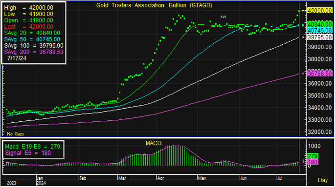 ราคาทองคำแท่งทำ All-Time High ที่ระดับ 42,150 บาทเมื่อวานนี้ อย่างไรก็ตาม ให้ระวังแรงเทขายทำกำไรระยะสั้น แนะนำอาจขายทำกำไรออกมาบางส่วน และยังถือต่อไปบางส่วน ขณะที่สามารถเข้าซื้อรอบใหม่บริเวณ 41,400-41,500 บาท