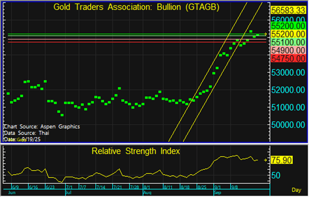 สืบเนื่องมาจากเมื่อคืนวันพฤหัสบดี สหรัฐฯ เผยจำนวนผู้ยื่นขอรับสวัสดิการว่างงานน้อยกว่าที่นักวิเคราะห์คาดการณ์ และน้อยกว่าครั้งก่อน ในขณะที่พาวเวลได้กล่าวในการประชุม FOMC เมื่อคืนวันพุธถึงมาตรการภาษีศุลกากรของปธน.ทรัมป์ที่เริ่มส่งผลให้ราคาสินค้าพุ่งสูงขึ้น ซึ่งเฟดยังคงจับตาผลกระทบโดยรวมเกี่ยวกับภาษีต่อไป อย่างไรก็ตาม พาวเวลยังได้แสดงความกังวลถึงอุปสงค์-อุปทาน ของตลาดแรงงานที่ลดลงอย่างชัดเจน อันเนื่องมาจากแรงงานผู้อพยพที่ลดน้อยลง ซึ่งเป็นเหตุให้ตลาดแรงงานชะลอตัว ในขณะที่ตลาดยังได้คาดการณ์เพิ่มเติมว่า เฟดอาจปรับลดอัตราดอกเบี้ย 0.25% จำนวน 3 ครั้งในปี 2569 แม้ว่า Dot Plot ส่งสัญญาณว่าเฟดจะปรับลดอัตราดอกเบี้ยเพียง 1 ครั้งก็ตาม ทางด้านกองทุน SPDR ถือครองทองคำเท่าเดิม รวมสุทธิ 975.66 ตัน