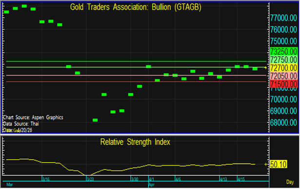 ราคาทองในประเทศยังคง Sideways ตามทองโลกและค่าเงินบาท จึงแนะนำทยอยขายตามแนวต้านที่ระดับ 72,750 บาท และทยอยซื้อตามแนวรับที่ 72,050 บาท แต่หากราคาหลุดแนวรับที่ 71,500 บาท ลงไป แนะนำขายตัดขาดทุน