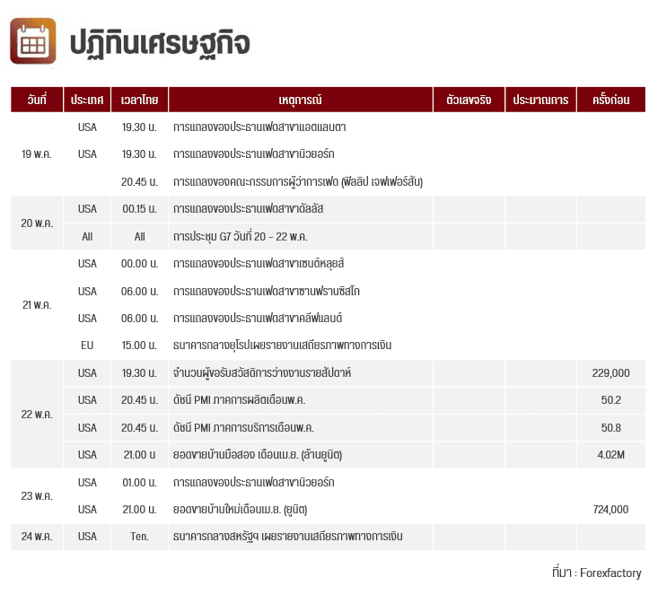 คืนนี้ สหรัฐฯ ไม่มีการประกาศตัวเลขเศรษฐกิจ แต่จะมีการแถลงของประธานเฟดสาขาดัลลัส