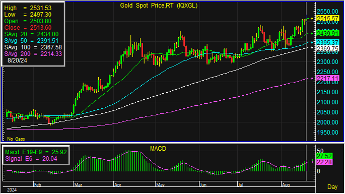 ราคาทองคำปรับตัวขึ้นต่อทำ All-Time High ใหม่อีกครั้ง แรงหนุนจากเงินดอลลาร์อ่อนค่ามาก Dollar Index อ่อนค่าเหลือ 101.38 ปัจจัยหนุนมาจากตลาดคาดหวังว่าเฟดจะลดดอกเบี้ยในเดือนก.ย. อย่างไรก็ตาม นักลงทุนจับตาการกล่าวสุนทรพจน์ของนายเจอโรม พาวเวล ประธานเฟด ในการประชุมที่เมืองแจ็กสัน โฮล ส่วนกองทุน SPDR ขายทอง 1.73 ตัน