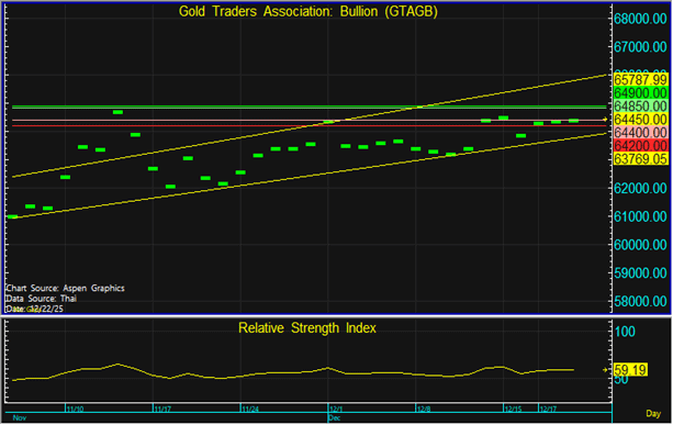 ราคาทองในประเทศมีการปรับตัวขึ้นตามทองโลก ในขณะที่ค่าเงินบาทแข็งค่าต่อเนื่อง จึงแนะนำทยอยขายตามแนวต้านที่ระดับ 64,850 และทยอยซื้อตามแนวรับที่ 64,400 บาท แต่หากราคาหลุดแนวรับที่ 64,200 บาท ลงไป แนะนำขายตัดขาดทุน