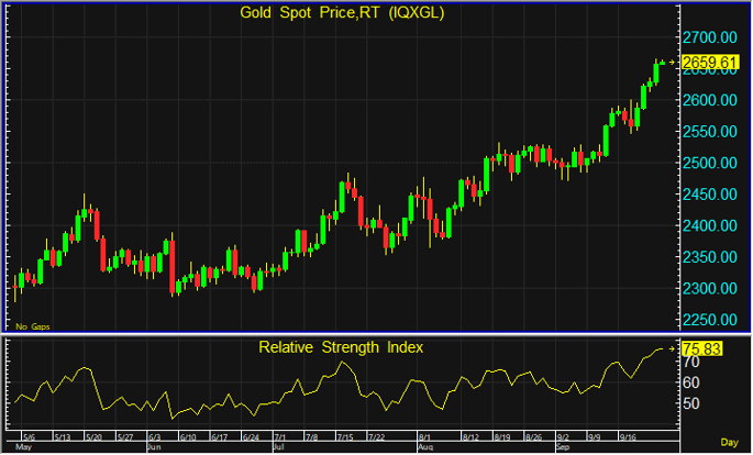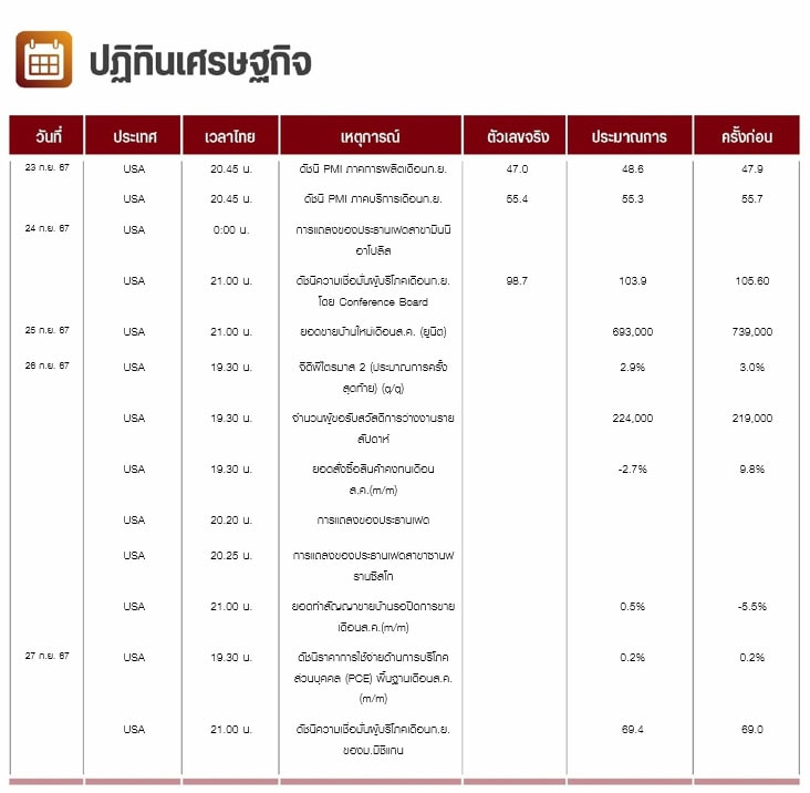วานนี้ราคาทองคำปรับตัวขึ้นจากตัวเลขเศรษฐกิจสหรัฐที่อ่อนแอลง และปัญหาทางด้านภูมิรัฐศาสตร์ รวมถึงการกระตุ้นเศรษฐกิจจากจีน จึงส่งผลกระทบให้ความต้องการทองคำในตลาดเพิ่มสูงขึ้น แม้ว่าทองโลกจะปรับตัวขึ้นแรงทำจุดสูงสุดใหม่ แต่ราคาทองไทยยังคงถูกกดดันจากค่าเงินบาทที่แข็งค่าลงแรงจากแนวโน้มการปรับลดดอกเบี้ยของเฟด