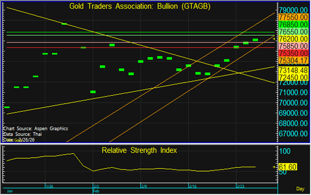 ราคาทองในประเทศมีการปรับตัวขึ้นตามทองโลก ในขณะที่ค่าเงินบาทแข็งค่า จึงแนะนำทยอยขายตามแนวต้านที่ระดับ 76,550 และทยอยซื้อตามแนวรับที่ 75,850 บาท แต่หากราคาหลุดแนวรับที่ 75,350 บาท ลงไป แนะนำขายตัดขาดทุน