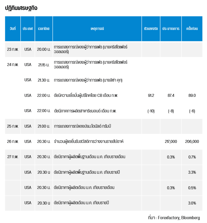 ทองโลกได้มีการปรับตัวขึ้น สืบเนื่องมาจากเมื่อวันพุธ (ตามเวลาไทย) ปธน. ทรัมป์ ได้ใช้โอกาสในการแถลงนโยบายต่อรัฐสภาด้วยการปกป้องมาตรการภาษีศุลกากรอย่างแข็งกร้าว พร้อมประกาศว่าจะไม่มีการเปลี่ยนแปลงใดๆ เกิดขึ้น เนื่องจากข้อตกลงทุกอย่างเสร็จสิ้นหมดแล้ว ในขณะที่ปธน.ทรัมป์ยังกล่าวในประเด็นอิหร่านเอาไว้ว่า ตนจะไม่มีวันยอมให้ผู้สนับสนุนการก่อการร้ายอันดับหนึ่งของโลกมีอาวุธนิวเคลียร์ไว้ในครอบครอง นอกจากนี้ ตลาดอสังหาสหรัฐฯ กำลังเผชิญกับความเสี่ยง โดยยอดการขอสินเชื่อเพื่อซื้อบ้านใหม่กลับร่วงลง 4.7% สู่ระดับต่ำสุดนับตั้งแต่เดือนเม.ษ. 2025 เนื่องจากราคาบ้านที่ยังคงสูงกลายเป็นอุปสรรคสำคัญต่อผู้ซื้อรายใหม่ เหตุนี้ปธน.ทรัมป์จึงต้องเร่งแก้ไขด้วยการอัดฉีดเงิน 2 แสนล้านดอลลาร์ ผ่าน Fannie Mae และ Freddie Mac เพื่อกดต้นทุนทางการเงินให้ต่ำลง และหวังกระตุ้นให้ตลาดอสังหาฯ กลับมาคึกคักอีกครั้ง อย่างไรก็ตาม ตลาดยังคงจับตาการเจรจาระหว่างสหรัฐฯ – อิหร่านในวันนี้ เพื่อติดตามความคืบหน้าในการเจรจาทางด้านนิวเคลียร์ / ขีปนาวุธอิหร่าน ทางด้านกองทุน SPDR ซื้อทองคำ 3.43 ตัน รวมสุทธิ 1,097.62 ตัน