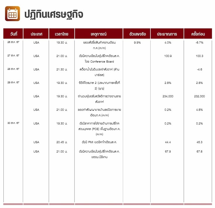 คืนนี้สหรัฐจะเปิดเผยดัชนีความเชื่อมั่นผู้บริโภคเดือนส.ค. โดย Conference Board ตลาดคาดว่าจะเพิ่มขึ้นสู่ระดับ 100.9 จาก 100.3 ในเดือนก.ค.