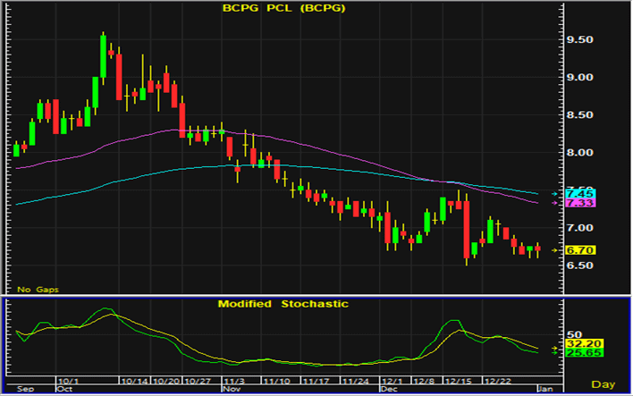 ราคาหุ้น BCPG แกว่งตัวแคบต่อเนื่องจากการซื้อขายสัปดาห์ก่อน และยังเคลื่อนไหวใกล้แนวรับสำคัญทางเทคนิคบริเวณ 6.55-6.6 บาท หากยังเคลื่อนไหวเหนือแนวรับนี้ แนะนำเปิดสถานะซื้อเก็งกำไร และมีจุดขายตัดขาดทุนอยู่ที่ 6.5 บาท