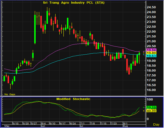 ราคาหุ้น STA อ่อนตัวลงในระหว่างวัน แต่สามารถกลับขึ้นมาปิดเพิ่มขึ้นต่อเนื่องจากวันอังคาร การเคลื่อนไหวทางเทคนิคในระยะสั้นจึงยังมีแนวโน้มฟื้นตัว และสามารถเก็งกำไรฝั่งซื้อใกล้แนวรับ 19.5-19.6 บาท และมีจุดขายตัดขาดทุนอยู่ที่ 19 บาท