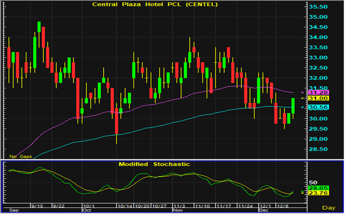 ราคาหุ้น CENTEL ปิดตลาดเพิ่มขึ้นต่อเนื่องจากวันศุกร์ และมีสัญญาณซื้อจากเครื่องมือทางเทคนิค การเก็งกำไรระยะสั้นแนะนำเปิดสถานะซื้อใกล้แนวรับบริเวณ 35.25-35.5 บาท และมีจุดขายตัดขาดทุนอยู่ที่ 35 บาท