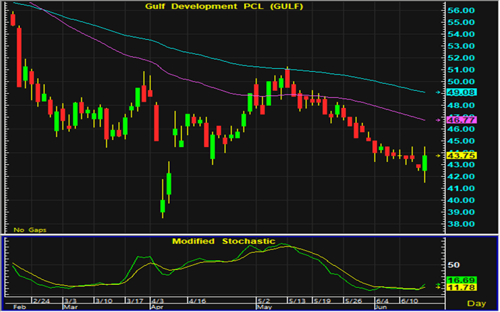ราคาหุ้น GULF ปรับตัวลงต่อเนื่องในการซื้อขายหลายสัปดาห์ที่ผ่านมา และวานนี้เริ่มเกิดแท่งเทียนที่เป็นสัญญาณการกลับตัวทางเทคนิค การเก็งกำไรระยะสั้นแนะนำเปิดสถานะซื้อใกล้แนวรับบริเวณ 42.75-43 บาท และมีจุดขายตัดขาดทุนอยู่ที่ 42 บาท